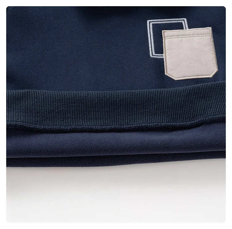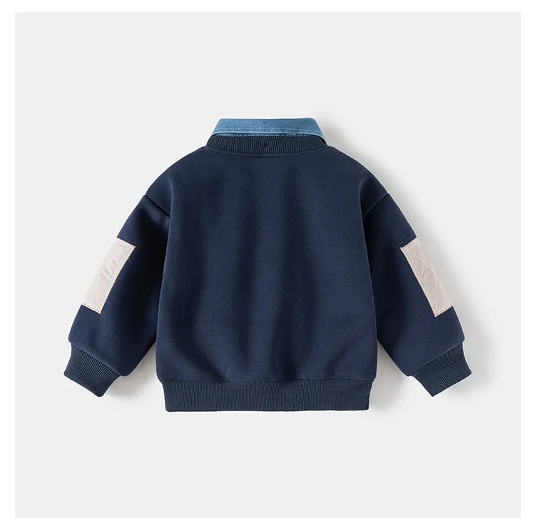 Autumn Winter Children Clothings Boys Layered Fleece Sweatshirt Denim Collar Patch Pocket Warm Pullover Kids Casual Top