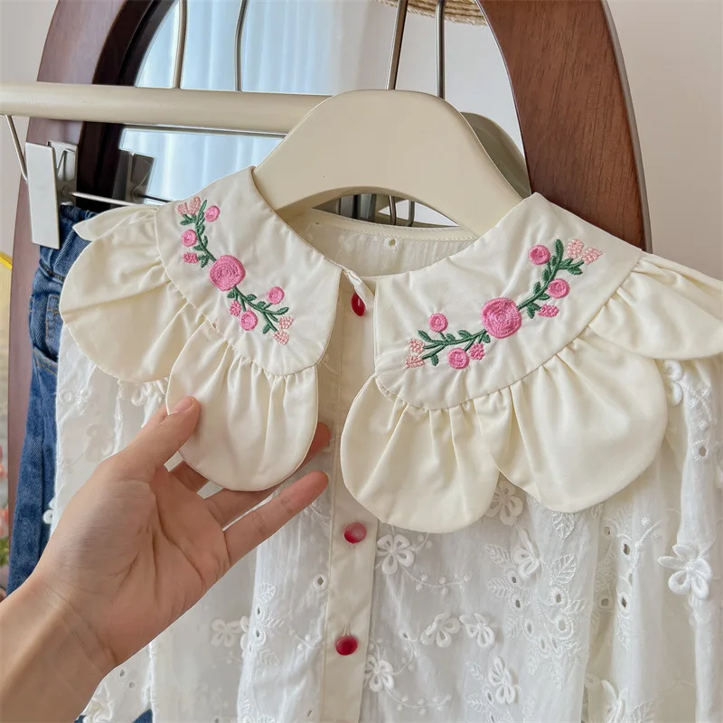 Children's Clothing Shirt 2024 New Girls Doll Shirt Childrens Clothing Autumn Clothing Korean Embroidered Shirt Baby