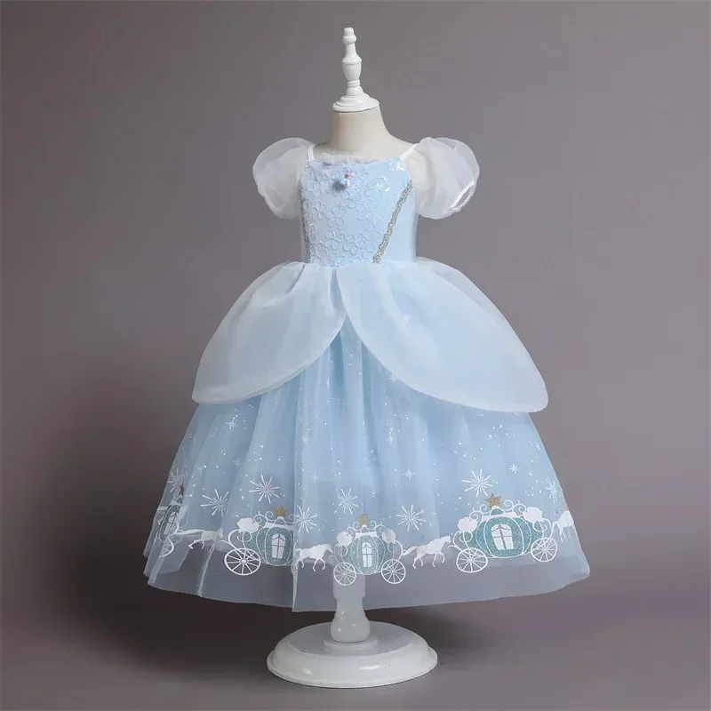 Cinderella Dress for Girls 4-10Yrs Carnival Cosplay Princess Costume Puff Sleeve Birthday Party Costume Halloween For Kids
