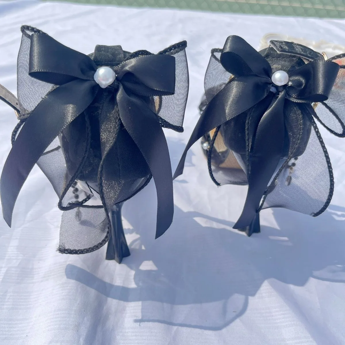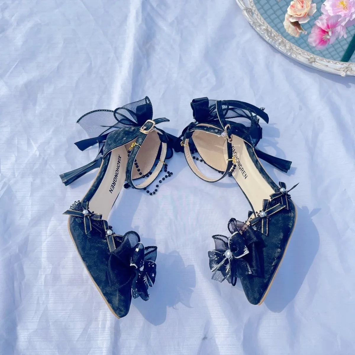 Elegant woman heeled shoes black lolita shoes heels for ladies y2k dress shoes for women High quality wedding shoes bride