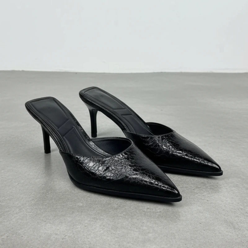 Women High Heels Sandals Elegant Pointed Toe 2025 Summer Footwear Brand Designer Slip on Party Ladies Mules Shoes
