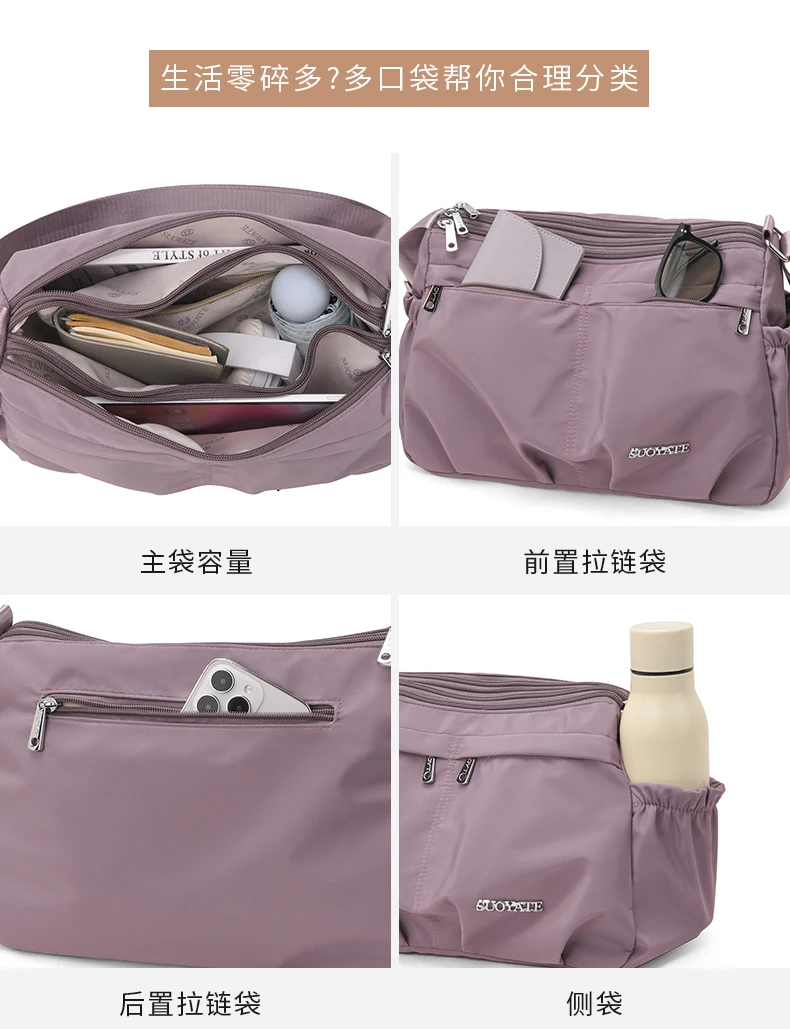 Women's Large Capacity Multi-Pocket Waterproof Nylon Crossbody Shoulder Bag, Detachable Strap Tote Handbag for Moms, Shopping